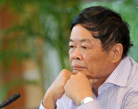 当日晚间播出的央视《新闻联播》画面显示,叶国富等企业家和专家先后发言。他就坐在左侧最靠边的位置。